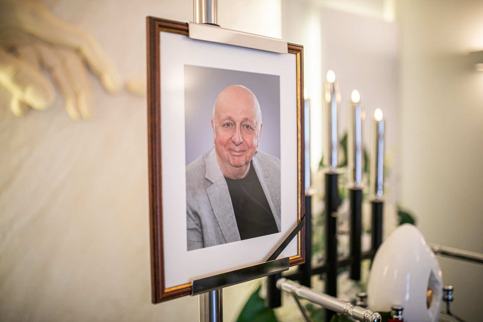 Dopełnieniem dekoracji jest stojak na zdjęcie lub portret osoby zmarłej, stanowiący symboliczne i emocjonalne przypomnienie o Jej obecności.